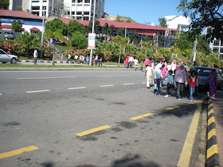 Beramai-ramai melintas jalan untuk ke Careefour.